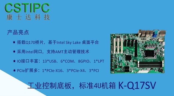 康士達傾力打造的這款主板基于Intel 6th處理器平臺Sky Lake,搭載Q170芯片組,采用標準ATX主板規格。標準七槽位,配標準4U機箱,提供各種PCIe擴展的選擇,結合多樣化的運動控制與IO功能模塊,具備運行高難度工業控制系統和視覺系統處理的能力。在工業控制、機器視覺、智能交通等尖端行業為廣大客戶帶來更完美的專業計算機硬件產品。