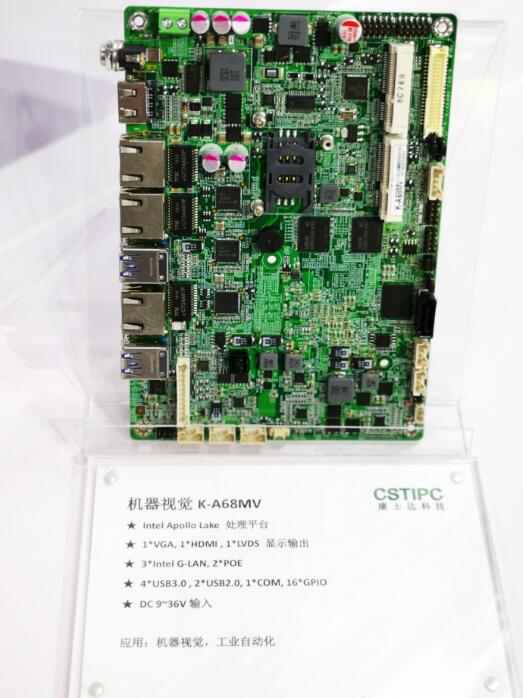 基于此,順應市場需求,康士達推出了基于低功耗、高效能的Intel Apollo lake處理平臺的機器視覺方案,以應對復雜的生產現場需求。康士達機器視覺新方案K-A68MV應用于低端雙攝像頭機器視覺方案,主機采用功耗低、高效能的Intel Apollo lake平臺處理器,采用Intel Celeron J3355/J3455處理器。主板尺寸165*115mm,4寸主板結構。具備3個Intel千兆網口,其中支持2路POE相機接入;主機支持8路隔離DI與8路隔離DO,能靈活搭配外不控制設備使用;主機采用板載內存,可采用MSATA卡或板載eMMC存儲,支持9~36V寬電壓輸入,能適應-20~+70℃寬溫使用環境,總體來說是一款穩定性極佳,高效能的機器視覺控制器。