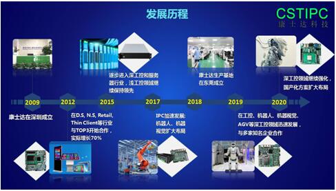 康士達2009年成立,初期是以淺工控為主,在數字標牌、零售等行業與TOP3合作,2015年逐步進入深工控行業,淺工控領域保持領先;2017年快速發展,在機器人、機器視覺領域擴大布局;2020年完美升級,在工業控制、機器人、機器視覺、AGV、自動駕駛等深工控領域發展迅速,與多家知名企業深度合作。未來,康士達將不斷探索,在更多尖端智能領域創新突破,提供更專業的計算機解決方案。